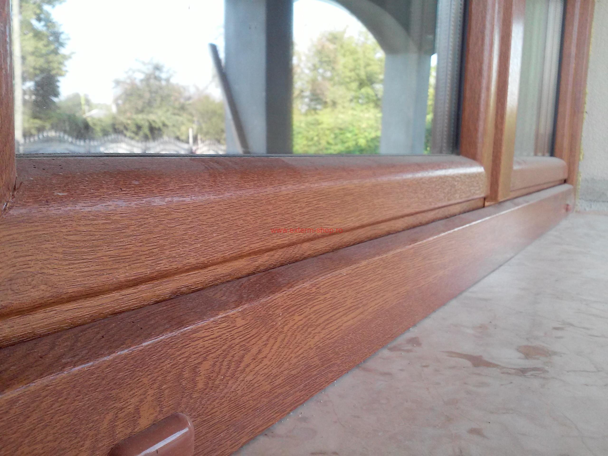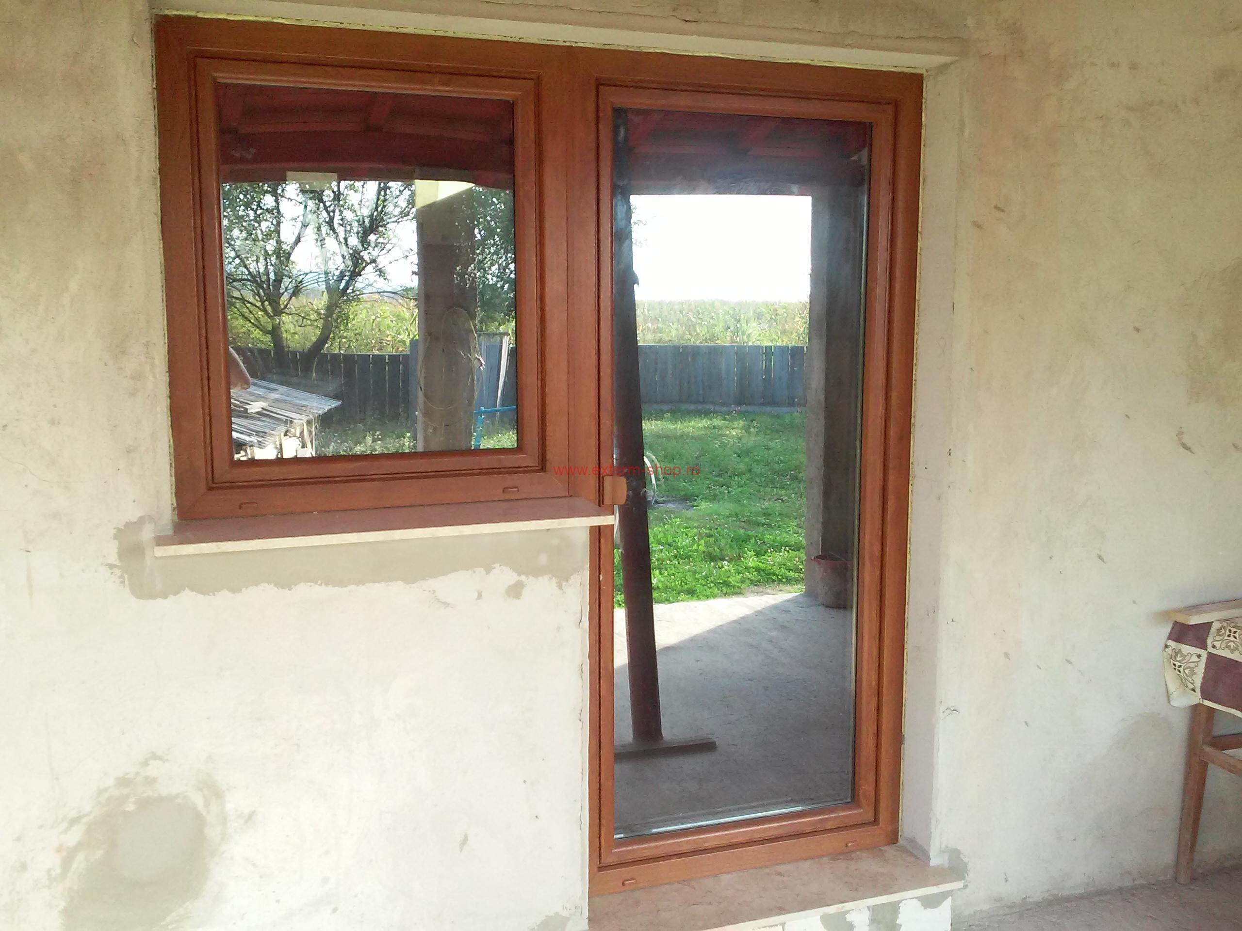 Tâmplărie PVC Barrier 70 mm cu geam termopan 24 mm – finisaj stejar auriu, Cândești, județul Neamț