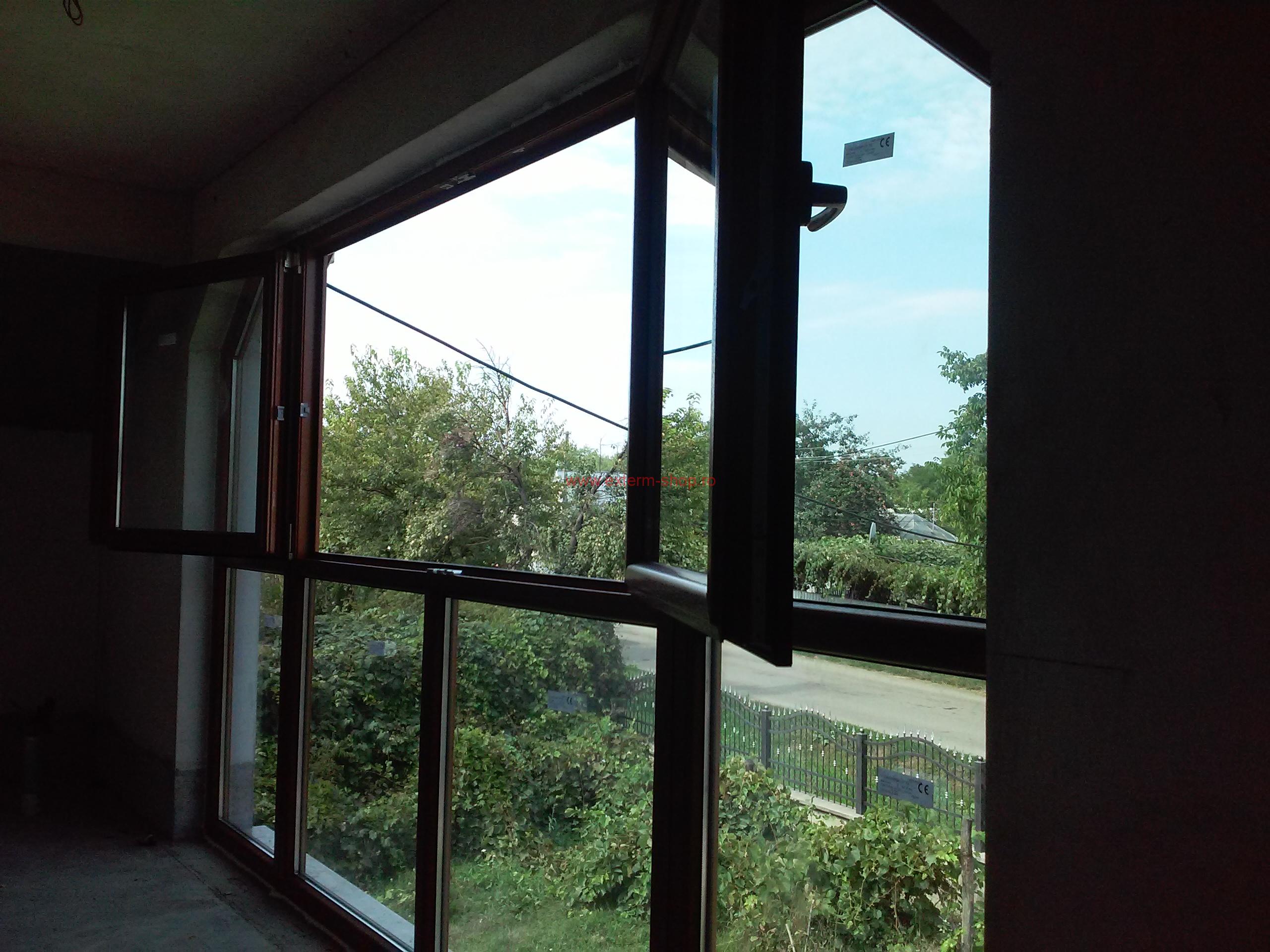 Producția tâmplăriei – profile Barrier 70 mm, culoare stejar auriu, geam termopan 24 mm.